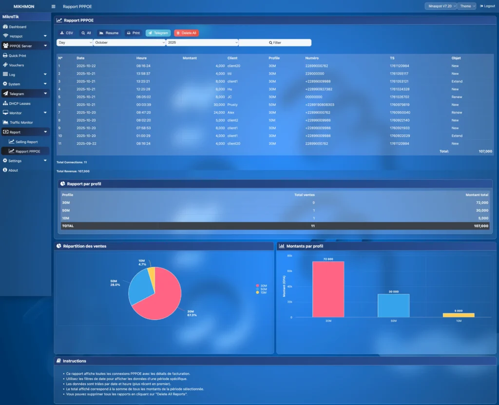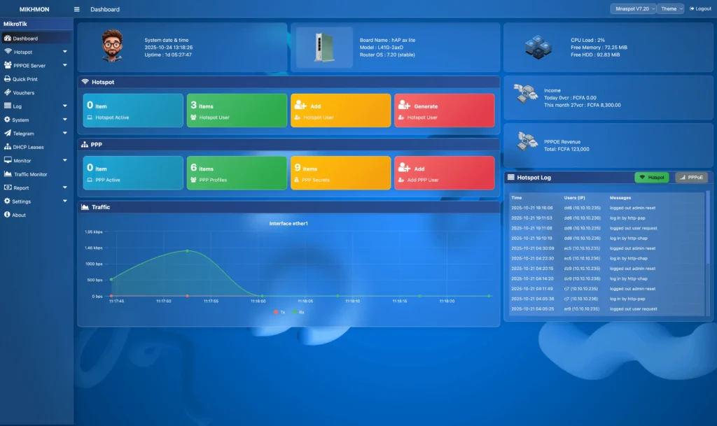 ✨ Mikhmon Pro v1 est une version entièrement repensée, compatible uniquement avec MikroTik RouterOS v7, et dotée de puissantes fonctionnalités exclusives.