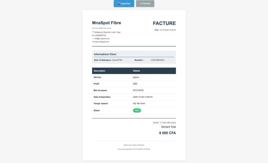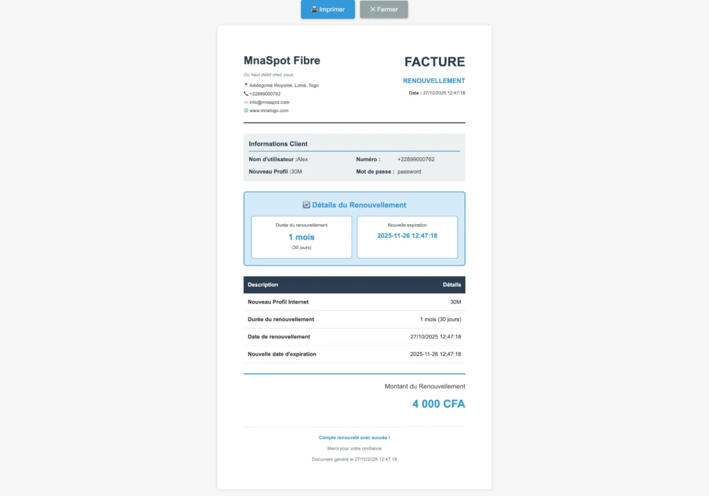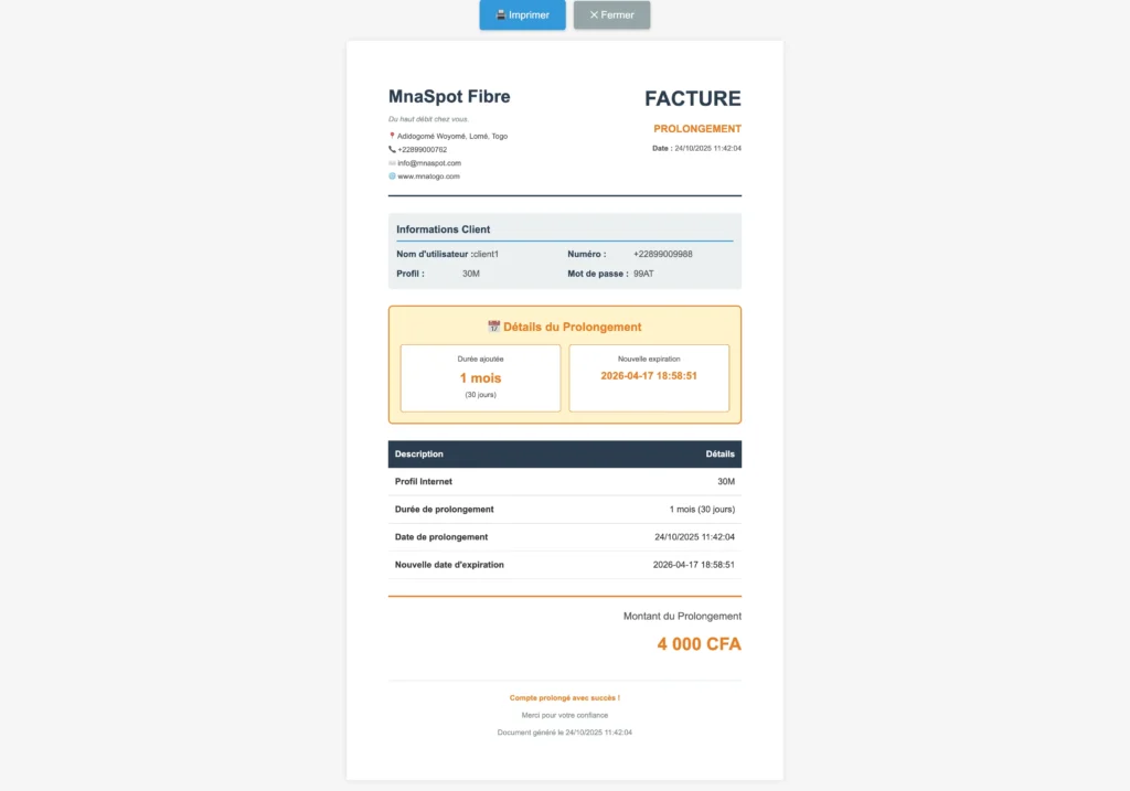 Création, renouvellement et prolongement des comptes PPPoE (avec facture automatique 🧾)